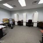 Very modern and well designed, end unit office/warehouse with access to semi-loading docs right next to it. Lobby/greeting area, 9 private offices, large conference room, break room, copier room, technician lab with numerous stations. Large warehouse area with motorized garage door leading to the loading dock. Completely finished interior with wood-like laminate flooring, custom window coverings, and state of the art air conditioning system allowing individual temperature control in all offices. The space consists of two units, unit 110 and 109.